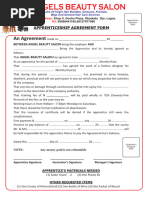 No I will abide by the apprenticeship training requirements No I agree to hold formal training sessions. No I agree to hold informal training sessions. No The salon has someone responsible for training. No Record Book.