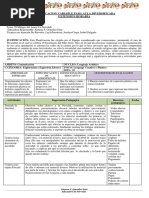 Objetivo (s) de la unidad: compartir experiencias e ideas sobre las profesiones, ocupaciones lugares, instituciones y servicios de la comunidad valorando su importancia por medio de la expresin oral, escrita y de algunas habilidades matemticas y de lecto-escritura a fin de fortalecer el sentido de pertenencias a su comunidad e interactuar en su entorno con precaucin, seguridad y satisfaccin. N Eje Resumen de contenidos Metodologa temtico Conversacin: Medidas de comunicacin oral, escrito y audiovisual. Presentacin de lminas con dibujos, de los medios de comunicacin. Presentacin de dibujo Nocin de nmero: la decena. de decenas. Juegos de roles. 3.3 medidas Juegos de roles. Cantar la cancin de mi bandera mostrar de smbolos patrios del pais. comunicacin. Movimientos corporales libres Aprestamiento: Tcnicas de coloreo, pintura, rasgado bruido de papel en cada actividad dado en la conversacin. Fiestas cvicas y smbolos patrios. Numero 11. 3.4: cultura cvica. Canciones y danzas folclricas. Marcha. Educacin Artstica: Expresin facial y corporal por medio de canciones cantar el himno nacional. Educacin Fsica: Equilibrio esttico. Nocin de velocidad: rpido - lento. Salto con un pie. Otros periodos: Recreo realizar juegos libres. Descanso: relajacin mental. Refrigerio: aprender hbitos de higiene Evaluacin Diagnstica: N indicador de logro: (Indicadores previos de la seccin o unidad anterior)2.1.4, 2.1.8, 2.2.1, 2.2.9, 2.2.16, 2.2.2 Evaluacin Formativa: N de indicador de logro: 3.1.1, 3.1.4, 3.1.8, 3.1.10, 3.1.13, 3.1.14, 3.1.15, 3.1.20, 3.2.7, 3.3.9 Evaluacin Sumativa: N de indicador de logro:3.1.2, 3.1.3, 3.1.7, 3.1.11, 3.1.16, 3.2.3, 3.2.6, 3.2.13, 3.2.18, 3.3.1, 3.3.15, 3.4.2, 3.4.12, 3.4.16
