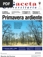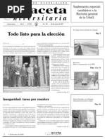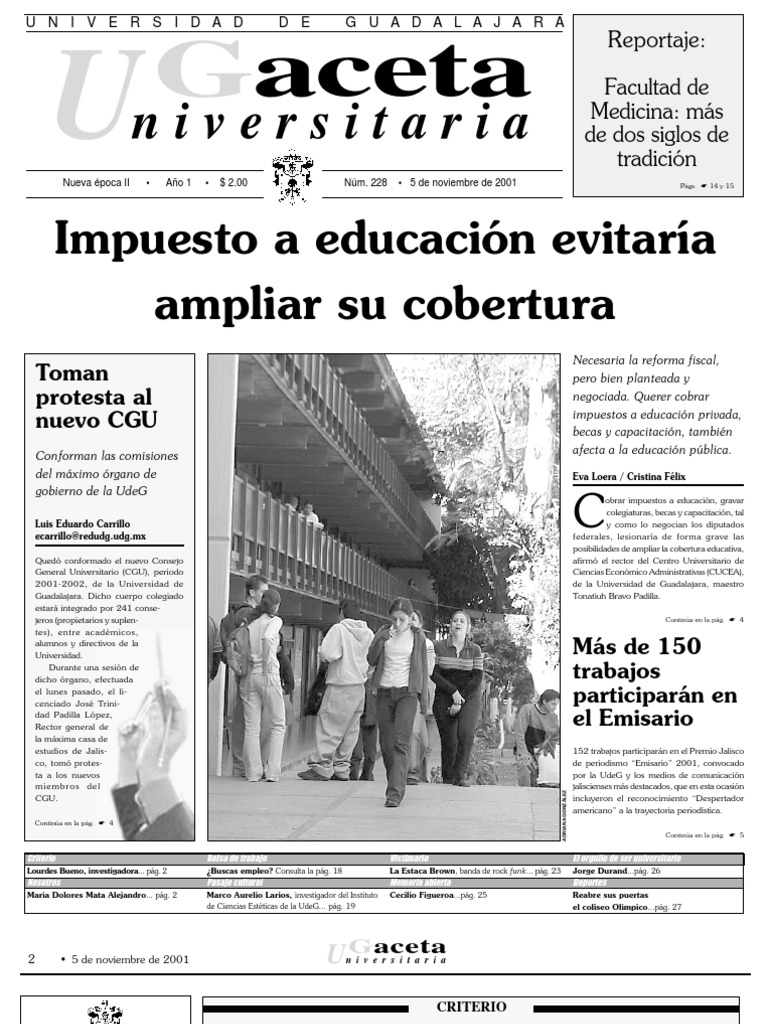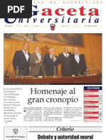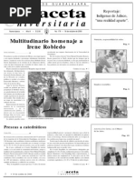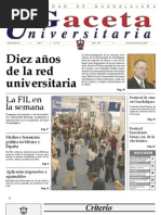 Rector general: Lic. Jos Trinidad Padilla Lpez. Vicerrector: Mtro. Ricardo Gutirrez Padilla. Secretario general: Mtro. Carlos Jorge Briseo Torres. Director de la Oficina de Comunicacin Social: Mtro. Jos Manuel Jurado Parres. GACETA UNIVERSITARIA Coordinadora general: Cristina Flix Machado. Coordinador de informacin: Jos Luis Ulloa. Coordinador de diseo: Rubn Hernndez. Diagramacin: Miriam Mairena, Santiago Salcido. Correccin: Miguel Garca A., Celina Quiroz, Paulo Csar Pardo. Distribucin: Margarita Alegra. Edicin electrnica: www.comsoc.udg.mx