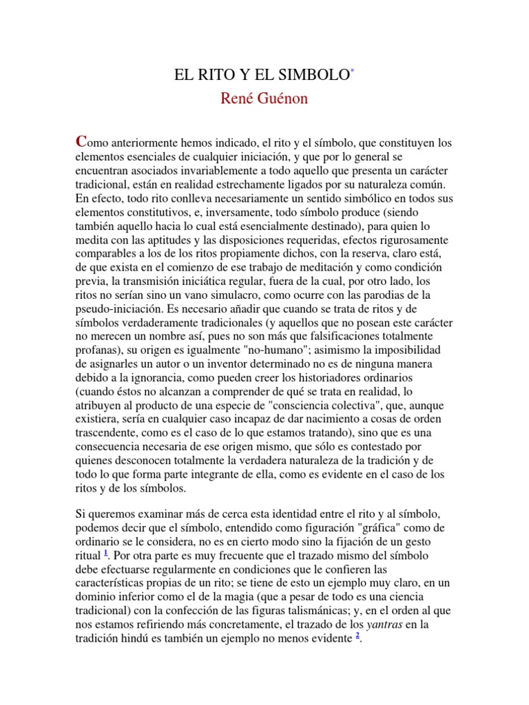 EL RITO Y EL SIMBOLO* Ren Gunon Como anteriormente hemos indicado, el rito y el smbolo, que constituyen los
