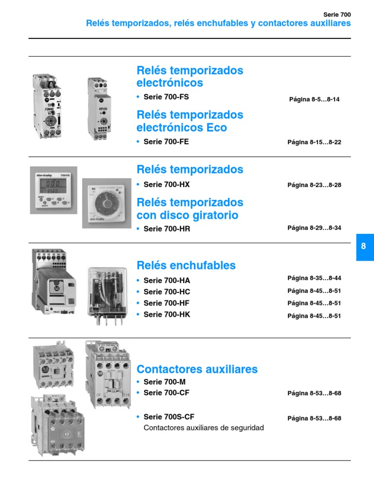 Descripcin general . . . . . . . . . . . . . . . . . . . . . . . . . . . . . . . . . . 8-2 Referencias de pedido . . . . . . . . . . . . . . . . . . . . . . . . . . . . . . . . 8-6 Seleccin del producto Multifuncin . . . . . . . . . . . . . . . . . . . . . . . . . . . . . . . . . . . . . . . 8-7 Monofuncin . . . . . . . . . . . . . . . . . . . . . . . . . . . . . . . . . . . . . . . 8-8 Intermitente asimtrico . . . . . . . . . . . . . . . . . . . . . . . . . . . . . . 8-10 Temporizado a la desconexin sin tensin de alimentacin. . 8-10 Rel temporizado estrella-tringulo . . . . . . . . . . . . . . . . . . . . 8-11
