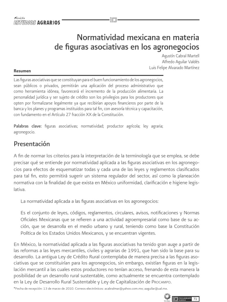 Palabras clave: guras asociativas; normatividad; productor agrcola; ley agraria;