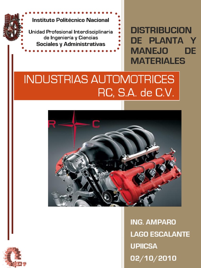 La empresa RC S.A. de C.V. cuenta con distintas plantas de produccin en nuestro pas; a pesar de ser una empresa multinacional y tener un prestigio tan elevado, la planta donde nos alojaron carece de muchas condiciones ideales para los trabajadores y para la misma empresa. El tipo de distribucin de planta es DISPOSICIN POR PROCESO por lo que cuenta con diferentes reas para la manufactura del producto, Para empezar la empresa tiene movimientos innecesarios que afectan el tiempo de fabricacin. Los almacenes no son aprovechados correctamente al colocar la materia prima y el producto terminado en distintas zonas que no son las asignadas para el almacenaje de estos. Existe mucha maquinaria obsoleta que no ha recibido mantenimiento mas sin embargo sigue ocupando espacio en zona productiva de la empresa. El compromiso con el encargado de la empresa para eficientar el proceso de produccin del producto seleccionado mediante una nueva propuesta de distribucin de planta, nos obliga como ingenieros industriales a la aplicacin de los conocimientos aprendidos en cada aspecto que vallamos analizando; cabe mencionar que no es fcil la realizacin de propuestas de redistribucin primero por el tipo de distribucin que tiene la empresa y otra debido a que la mayora de las mquinas como las troqueladoras, son fijas y sera demasiado tardado y algo costoso realizar una nueva redistribucin; mas sin embargo los cambios pequeos que se realicen, estamos seguros que sern los suficientes para observar un cambio significativo en la produccin.