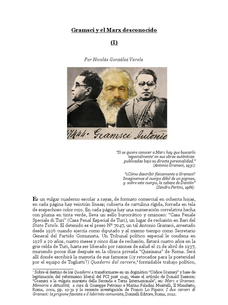 "Gramsci y El Marx Desconocido" (I Parte) Por Nicolás González Varela