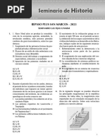E) decadencia urbana. 2. Los Lupacas conformaron un poderoso reino local durante el Intermedio Tardo en el actual departamento de: A) Junn B) Huancavelica C) Ayacucho D) Puno E) Hunuco 3. Fund la Sociedad Amigos de los Indios y se sublev en Puno contra las tiranas de los gamonales en 1867: A) Len Escobar B) Teodomiro Gutierrez C) Pedro Cochachn D) Juan Bustamante E) Narciso Arestegui 4. El triunfo de Nicols de Pirola en 1895 trajo como principal consecuencia: A) la muerte del Brujo de los Andes. B) el fin de la Reconstruccin Nacional. C) el fin del Segundo Militarismo. D) el inicio del Tercer Militarismo. E) La caida definitiva de Manuel Gonzales Prada. 5. Bustamante y Rivero haba llegado al poder en 1945 con el apoyo de una alianza poltica de partidos de centroizquierda. Esta alianza se denomin: A) Unin Revolucionaria B) Partido Democrtico Reformista C) Unin Nacional D) Frente Democrtico Nacional E) Alianza Democrtica ____________________________ RESPUESTAS 1. A