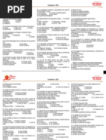 monumental. 2.- (e) Los Geoglifos Nazca, conocidos generalmente como "lneas", fueron elaborados a lo largo del Per prehispano, desde el 500 aC hasta el periodo Inca; sin embargo, las principales figuras se encuentran asociadas a la cultura Nazca que se desarrollo durante el Intermedio Temprano o primer desarrollo regional. 3.- (a) Los jefes tnicos prehispanos (Curacas) durante la colonia pasaron a llamarse Caciques, en su mayora se engranaron al sistema de explotacin elaborado por los invasores espaoles, pues estos les ofrecieron compensaciones, como no mitar, ni tributar, adems que podan poseer propiedades y tener educacin. 4.- (a) El quinto virrey del Per, Francisco de Toledo, fue el organizador del sistema de explotacin colonial conocido como mita, el cual era realizado por los indios principalmente en las minas de plata decubiertas en Potosi. Los indios fueron obligados a vivir en reducciones para que su fuerza de trabajo sea mejor administrada por las autoridades coloniales. 5.- (d) Las cofradias fueron instituciones que giraban en torno al culto de Jess, la Virgen Maria o un santo Patrn, los miembros de las cofradias organizaban la fiesta y procesin del Patrn. Existan cofradias de artesanos, comerciantes, mestizos, indios e incluso esclavos. APROBADOS CON 50 PUNTOS ________________ CON 40 PUNTOS - FIORELLA RAFAEL COAGUILA (Colegio Prolog) CON 30 PUNTOS ________________