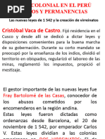 1. Una de las consecuencias de la Batalla de Chupas fue: a) la victoria de los encomenderos almagristas. b) la muerte del Gobernador y Adelantado Francisco Pizarro. c) la caida del Gobernador Cristbal Vaca de Castro. d) la muerte de Diego de Almagro el mozo. e) el derrocamiento del Pacificador Pedro de La Gasca. 2. Las Nuevas Leyes del Rey Carlos I de Espaa fueron inspiradas principalmente por: a) Francisco Pizarro b) Hernn Cortez c) Bartolom de las Casas d) Fray Domingo de Santo Toms e) Fray Jos de Acosta 3. Una de las batallas ms cruentas de las guerras entre espaoles fue en Iaquito donde: a) Hernando Pizarro derrot Orgoez b) Vaca de Castro derrot a Almagro el mozo