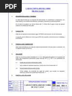 DESCRIPCION 3- Normas de fabricacin y ensayos .................................................... 4- Tensiones nominales Uo/U y frecuencia nominal de servicio (kV/kV, Hz) ......................................................................... 5- Seccin nominal de conductor (mm2) .............................................. 6- Radio mnimo de curvatura (m)........................................................ 7- Dimetro exterior (mm) - nominal........................................................................................ - mximo........................................................................................ 8- Traccin mxima admisible en operacin de tendido (N) - sobre conductor .......................................................................... - sobre recubrimiento .................................................................... Conductores 9- Metal conductor ................................................................................ 10- Nmero mnimo de alambrones por conductor .............................. 11- Dimetro de alambrones antes del cableado (mm)........................