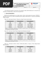3. CONDICIONES GENERALES Las condiciones de servicio para los Cables utilizados para redes de distribucin, a los efectos de la determinacin de las capacidades de corriente en servicio continuo son las siguientes: 3.1 AMBIENTE Las condiciones ambientales son las siguientes: Temperatura ambiente mxima Temperatura ambiente mnima Temperatura anual promedio Temperatura diaria promedio Altitud sobre el nivel del mar Humedad relativa mxima Contaminacin ambiental por depsito de sal Radiacin solar mxima Velocidad mxima del viento 45 C 5 C 25 C 35 C 1000 m 95 % 0.05 mg/cm2 1100 W/m2 120 km/h. siguientes