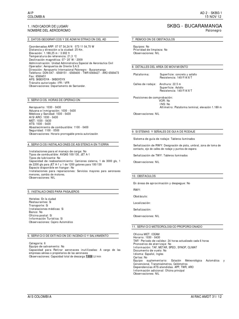 Direccin: Aeropuerto Internacional Palonegro - Bucaramanga