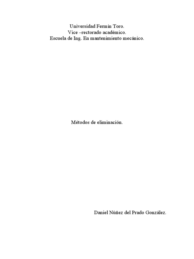 Mtodo de eliminacin de Gauss. El mtodo de eliminacin de Gauss propone resolver un sistema de ecuaciones intercambindolo por otro equivalente pero escalonado. Entonces se procede a la eliminacin progresiva de variables hasta obtener un sistema de una ecuacin con una variable.