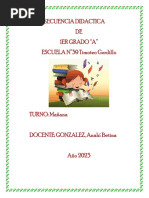 JUEGO DEL QUIN SE FUE. Se quita una imagen y se pregunta Quin se fue? Primero se quita 1 personaje, luego 2, 3, y ellos dicen quin se fue. Quitamos todos los personajes y los guardamos (aproximadamente 2 das). Actividades por da 1 Narracin. 2 Presentacin de los textos. 3 Doblado de textos. PRUEBA ECONMICA En una hoja, los nios copian los textos. Todos copian el tablero (cuadro grande). Clasificamos a los nios que copiaron todo, a los que escribieron slo algunas letras y a los que dibujaron o no hicieron nada, para reacomodarlos.