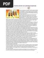 [Link] vlida cualquier tcnica, cualquier disciplina que abra la experiencia individual a su conexin con la Fuente ltima. Cualquier religin vlida, cualquier tcnica vlida, resulta til y no debe ser suprimida ni eliminada por otra tcnica. Las religiones han buscado proteger su propia viabilidad a fin de mantener el acceso que proporcionan para conectarse con la conciencia transpersonal que es la fuente de toda vida. Aunque esto es natural, ya no resulta apropiada la militancia con la que las religiones se han defendido a s mismas. Los seres humanos han llegado ya a una etapa de su evolucin en la que pueden abrazar y honrar a todas las religiones, todas las disciplinas, que proporcionen acceso a la experiencia individual de la conciencia transpersonal, que es la fuente de todas las formas. Las guerras religiosas ya no son adecuadas. Las religiones deben reconocer que hay muchos caminos para llegar a la Fuente. Algunos de estos caminos son muy personales y no se ajustan a los lmites y las definiciones de una religin en particular. No obstante, son vlidas siempre que satisfagan la necesidad individual de conectarse con el estado transpersonal de la conciencia. Muchas de las tcnicas que ahora afloran, en relacin con la llamada Nueva Era, no estn limitadas, en lo formal, a alguna religin en particular. Muchas de estas tcnicas son una amalgama de diversas disciplinas que el individuo ha incorporado a lo largo de muchas vidas. El individuo no necesita preocuparse por la correccin o la convalidacin de una tcnica en especial. El individuo slo necesita confiar "en su experiencia del resultado de la tcnica. Si una tcnica o una amalgama de disciplinas abre al individuo a su conexin con lo divino, con la Fuente, con lo transpersonal, esa tcnica es vlida. El individuo slo necesita confiar en su experiencia. Basta con eso. No hace falta el respaldo de una religin especfica a fin de vivenciar la conexin con Dios. *** Sugerimos que es til cualquier tcnica o disciplina que permita el acceso individual al plano transpersonal de la conciencia. El individuo ansa retomar a la Fuente. Ansa vivenciar su conexin con Todo lo que Existe. Esta experiencia se puede logar mediante el contacto con el aspecto transpersonal de la propia conciencia individual. Es til que en todo ser humano exista este anhelo por lo transpersonal, por lo divino, por Dios. Es este anhelo de retomar a la fuente lo que impulsa a los humanos a extenderse ms all de su ego personal, hacia algo ms grande que su ser individual. Esto ha ayudado a debilitar el dominio que el ego tiene sobre el individuo. Sin embargo, debemos hacer notar que el ego trata de limitar en el individuo la experiencia de quin es, a fin de mantener su control. Como se ha dicho, esto no est mal. Es parte de la funcin del ego. El ego trata de dominar la psiquis del individuo. Una de las maneras de lograrlo es utilizar pensamientos negativos sobre el ser para limitar la experiencia que el individuo tiene de su propia magnificencia. Es decir: cada individuo es nico, es una manifestacin nica de la posibilidad de la vida. Cada individuo est conectado con lo transpersonal y, por lo tanto, carece totalmente de limitaciones. Sin embargo, el ego no desea que el individuo experimente su conexin con los niveles transpersonales de la conciencia. Por lo tanto, el ego tratar de negar la experiencia que el individuo tenga de su propia divinidad. Una vez ms, esto no est mal. El ego se limita a defender su propia supervivencia. El ego es un mecanismo conectado con la mente humana. Este ego permite la experiencia de individuacin. Esto ha sido til. Sin embargo, ha llegado el momento de trascender el ego y experimentar la unidad que yace tras la ilusin de toda separacin. Es especialmente necesario que el individuo humano experimente su unidad con todas las otras formas de la vida que habitan el planeta Tierra y con la Tierra misma. Todo es uno en la conciencia. Por eso te traemos este libro. Es hora de que trasciendas tu ego, de que te conectes con el aspecto transpersonal de tu conciencia y vivencies tu unidad y, por lo tanto, tu sociedad con toda la vida. *** Tu planeta ha llegado a un punto de su desarrollo en el que necesita de ti como socio. Ahora es necesario que los seres humanos reconozcan su unidad con la naturaleza. Tu planeta ya no puede sobrevivir al abuso que est recibiendo de los humanos. Este abuso brota de la ignorancia de la unidad entre la Tierra y todos los seres que viven en su superficie. Ya no es posible para los humanos separarse de su unidad con su ambiente. Hacerlo ya no resulta viable. Por eso te hemos estado indicando que tu Tierra es un Ser, tanto como lo eres t. Es imposible transformar tu plano de conciencia sin interactuar con ella. Ella te necesita tanto como t necesitas de ella. Esto est claro. Una vez que reconozcas tu ntima relacin con el Ser que es tu planeta, puedes comenzar a ver maneras de ayudarla. Una vez ms, te recordamos que ella te apoya inmensamente y que te ha estado apoyando durante todas tus vidas humanas. Probablemente no ha habido otro Ser que t dieras tan por sentado. Los humanos ya no podis permitiros el lujo de dar a la Tierra por sentada. Est en peligro. Los humanos podis ayudarla o continuar abusando de ella. Si el abuso contina, ella ya no podr sustentar la vida humana. No puede sustentar a todas las formas de vida que en otros tiempos aliment, debido a la destruccin de sus