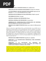 2 Cfr. Artculo 365 de la Constitucin Poltica. En atencin a la sentencia C-623 de 2004, la seguridad social cumple con los tres postulados bsicos para categorizar a una actividad como de servicio pblico, ya que est encaminada a la satisfaccin de necesidades de carcter general, exigiendo el acceso continuo, permanente y obligatorio de toda la colectividad a su prestacin, y adems, siendo necesario e indispensable para preservar la vigencia de las garantas fundamentales en el Estado Social de Derecho. 3 Sobre el particular, en la citada sentencia, la Corte estableci que la seguridad social como derecho implica, de un lado, la posibilidad de exigir al Estado la realizacin de un hecho positivo o negativo () consistente en dar, hacer o no hacer alguna cosa., y por otro, para su efectiva realizacin, la sujecin a normas presupuestales, procesales y de organizacin, que lo hagan viable y, adems, permitan mantener el equilibrio del sistema. 4 Los tratados y convenios internacionales ratificados por el Congreso, que reconocen los derechos humanos y que prohben su limitacin en los estados de excepcin, prevalecen en el orden interno. // Los derechos y deberes consagrados en esta Carta, se interpretarn de conformidad con los tratados internacionales sobre derechos humanos ratificados por Colombia.