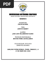 17Descripcin: El rbol de zapote puede alcanzar hasta 20-25 m de altura; por lo comn es de copa simtrica o irregular, de ramas gruesas y follaje denso. Las hojas son de formas ovadas o lanceoladas y se concentran en el pice de las ramas. Las flores son pequeas y casi ssiles, crecen en grandes cantidades debajo de las ramas nuevas y a lo largo de las ramas sin hojas. Cada flor consta de cinco estambres verdaderos y cinco falsos; el pistilo posee un solo estigma y el ovario tiene cinco [Link] frutos pueden ser desde fusiformes, elongados, elipsoidales hasta esfricos, llegando a pesar hasta 3 kg en algunos genotipos. La cscara es dura, rugosa y quebradiza, de color pardo rojizo. La pulpa vara en textura y color de rojo anaranjado o grisceo; es aromtica, dulce y suave en la madurez, comnmente con algunas fibras dependiendo del cultivar. Por lo general el fruto contiene una o varias semillas.