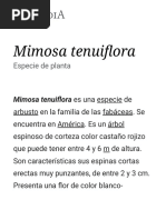 43Descripcin: rbol de 15 m de altura, porte generalmente pequeo, tronco retorcido y tortuoso, copa en forma de parasol. Foliolos. Sobre la copa crecen flores erguidas en cabezuelas solitarias de estambre blanco rojizos. Propagacin y Crecimiento: semilla o estaca. Sus frutos son legumbres firmes y secas con varias semillas que se adaptan muy bien a la altura. Su copa aparasolada dar una excelente sombra al espacio pblico. Flor: blanca Hojas: Compuestas