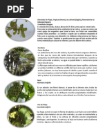 18-Descripcin: rbol gigante que puede alcanzar ms de 40m de altura y 2.5m de dimetro, tronco recto y cilndrico, frondoso, hojas ovaladas, grandes, de verde intenso, simples, alternas, coriceas, con pice redondeado y agrupadas al final de las ramas. La corteza externa es de color caf oscuro con manchas blancas y exfoliacin del ritidoma con apariencia fisurada. La corteza interna es de color rosado y exuda una resina acuosa de color rojizo amarillo; las flores son pequeas de color crema y dispuestas en paniculas terminales. Echa un fruto de consistencia harinosa, llamado narices por su forma de pera, que en el antiguo Valle de Upar se utilizaba cocido y molido para elaborar una especie de pan comestible llamado pan de caracol. Hay dos corregimientos en Valledupar que se llaman Caracol y Caracolicito respectivamente. Se reproduce por semillas.