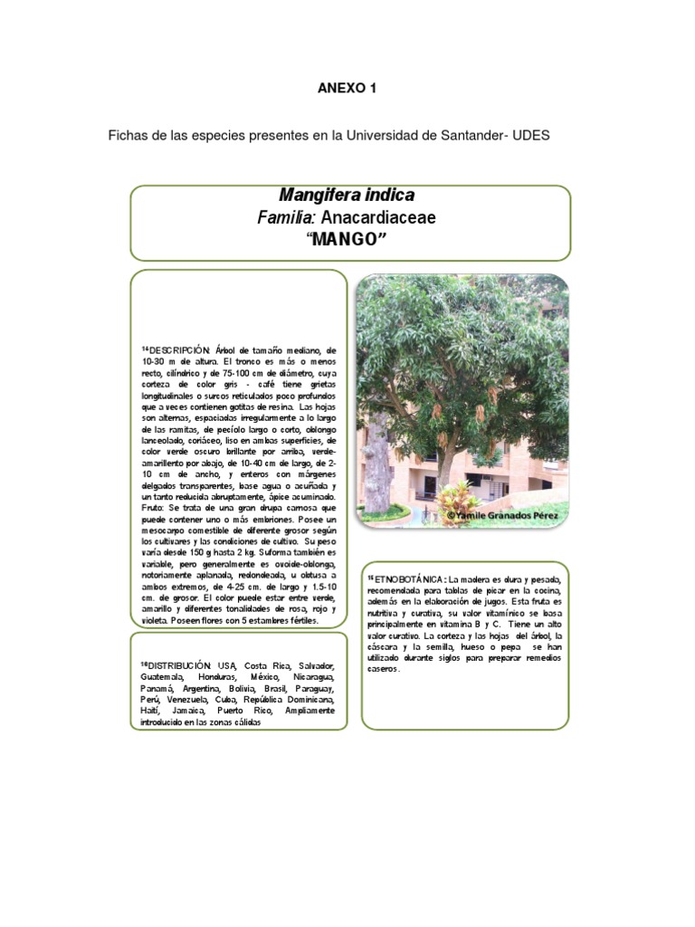 Fichas de las especies presentes en la Universidad de Santander- UDES