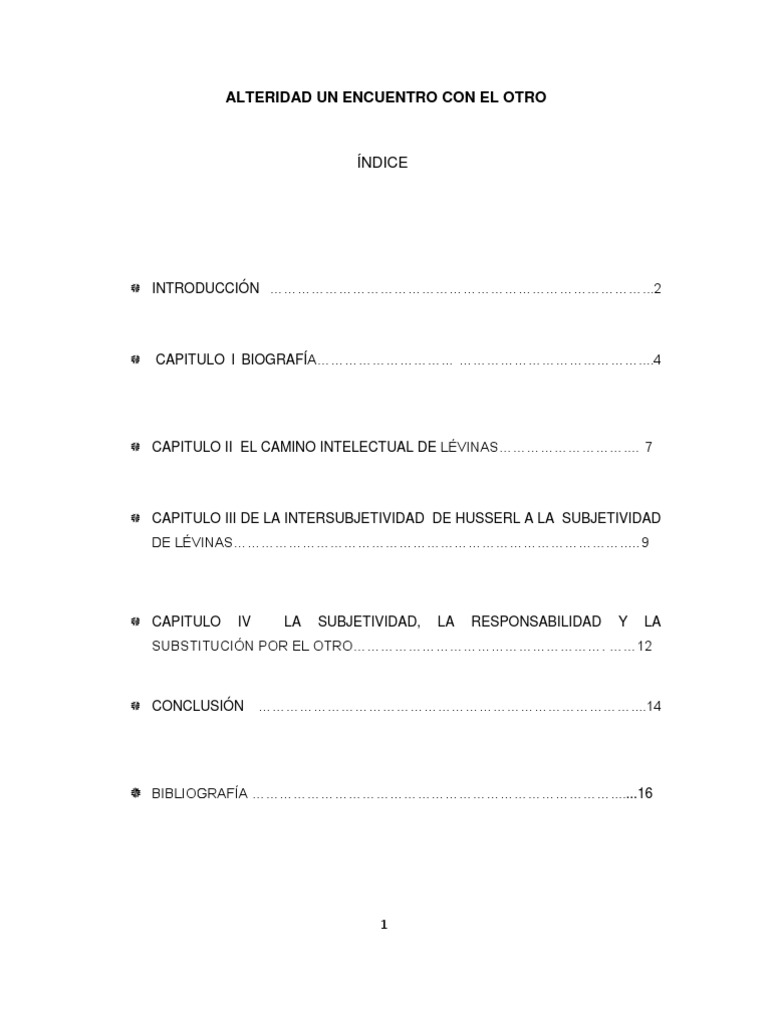 El trabajo est estructurado de la siguiente manera: primeramente encontraremos la biografa de Emmanuel Lvinas, donde menciono lo ms relevante de su vida personal as como sus principales obras.