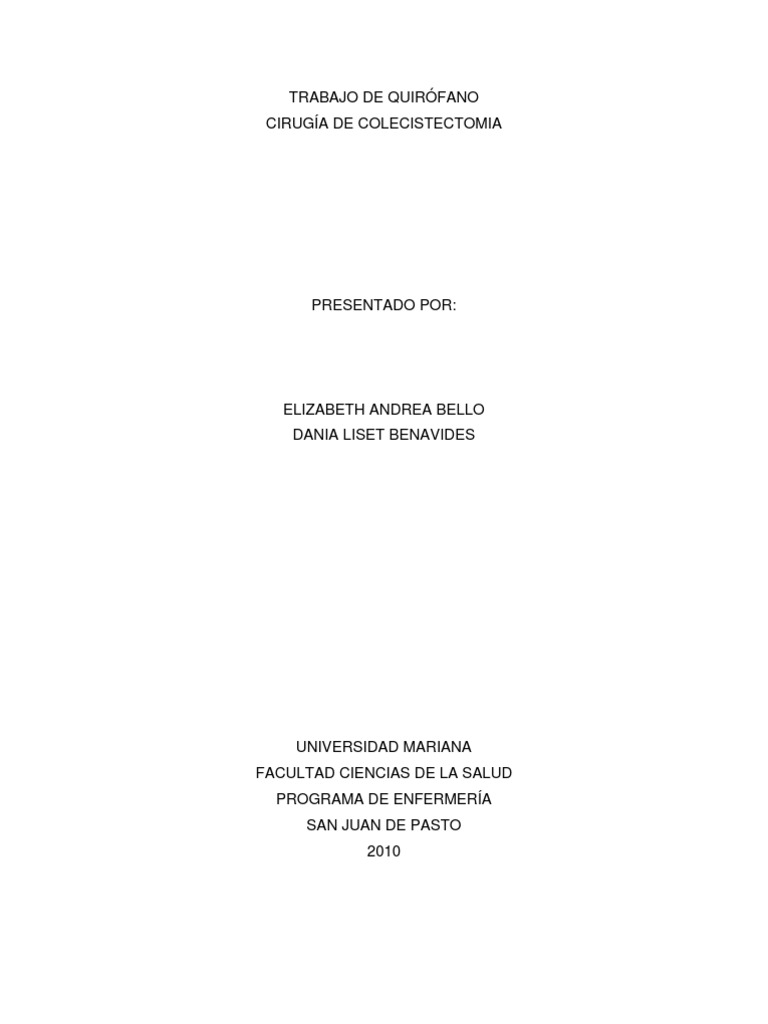 TRABAJO DE QUIRFANO CIRUGA DE COLECISTECTOMIA