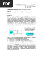 A una barra de germanio (Ge) de 2 cm2 de seccin y 10 cm de longitud, se aplica una diferencia de potencial de 10 V entre sus extremos. (Nota: El campo elctrico E es constante a lo largo de la barra, V = E L) a) Calcular la resistencia de la barra, b) la velocidad de arrastre de huecos y electrones, c) la densidad de corriente de los electrones y huecos, d) densidad de corriente total. Propiedades del germanio. 13 -3 Concentracin intrnseca a 300 K, n i = 2.36 x 10 cm Movilidades, n = 3600 cm2/ V s y p = 1800 cm2/ V s
