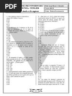 03.Si al comprar una docena de lapiceros me regalan 1 lapicero. Cuntas docenas he comprado si recibo 338 lapiceros? A) 21 B) 24 C) 26 D) 28 E) 30 04.A tiene un ao menos que B y B un ao menos que C. Si el cuadrado de la edad de C se resta el cuadrado de la edad de B, la diferencia es 11 aos menos que los 17/5 de la edad de A. Hallar la edad de C? A) 10 aos B) 11 aos C) 12 aos D) 15 aos E) 14 aos 05.En una tienda hay la siguiente oferta: un cuadro grande con marco vale 6 cuadros pequeos sin marco, 2 cuadros grandes sin marco valen uno pequeo con marco, tres pequeos sin marco valen uno pequeo con marco. Cuntos cuadros pequeos sin marco se pueden cambiar por los marcos de dos cuadros grandes? A) 6 B) 7 C) 9 D) 10 E) 12 06. Si tiene un examen de 350 preguntas de las cuales 50 son de matemticas, suponiendo que a cada pregunta de matemticas se da el doble de tiempo que a cada pregunta no relacionada, con esta materia. Cunto demorar resolver matemticas si el examen dura tres horas? A) 45 min B) 52 min C) 62 min D) 60 min E) N.A. 07.Para ensamblar 50 vehculos, entre bicicletas, motocicletas y automviles, se utilizaron entre otros elementos 38 motores y 148 llantas. Cuntas motocicletas se ensamblaron? A) 10 B) 12 C) 14 D) 16 E) 24 8. El cuadrado de la suma de las 2 cifras que componen un nmero es igual a 121. Si de este cuadrado se restan el cuadrado de la primera cifra y el doble del producto de las 2 cifras; se obtiene 81. Cul es el nmero? A) 65 B) 56 C) 47 D) 38 E) 29 09. Hoy gan S/.1 ms que ayer y lo que he ganado en los dos das es 25 soles ms que los 2/5 de los que gan ayer. Cunto gan ayer? A) S/.15 B) S/.16 C) S/.14 D) S/.17 E) S/.13 10.A y Bcomienzan a jugar con igual suma de dinero; cuando B ha perdido los 3/4 del dinero con que empez a jugar, lo que ha ganado A es 24 soles ms que la tercera parte de los que le queda a B. Con cunto empezaron a jugar? A) 20 soles B) 21 soles C) 22 soles D) 23 soles E) 36 soles