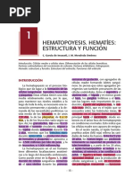 FIGURA 1. Esquema simplificado de la hematopoyesis. Una rara poblacin de CMH genera de manera continua y regulada una progenie de clulas maduras, que pasan a la circulacin sangunea. La multipotencialidad se va perdiendo a medida que las clulas se van diferenciando en los distintos linajes. La MO tambin alberga otros tipos de progenitores, como los mesenquimales y los endoteliales. (Tomado de [Link] modificado por la Dra. H. Eixarch).