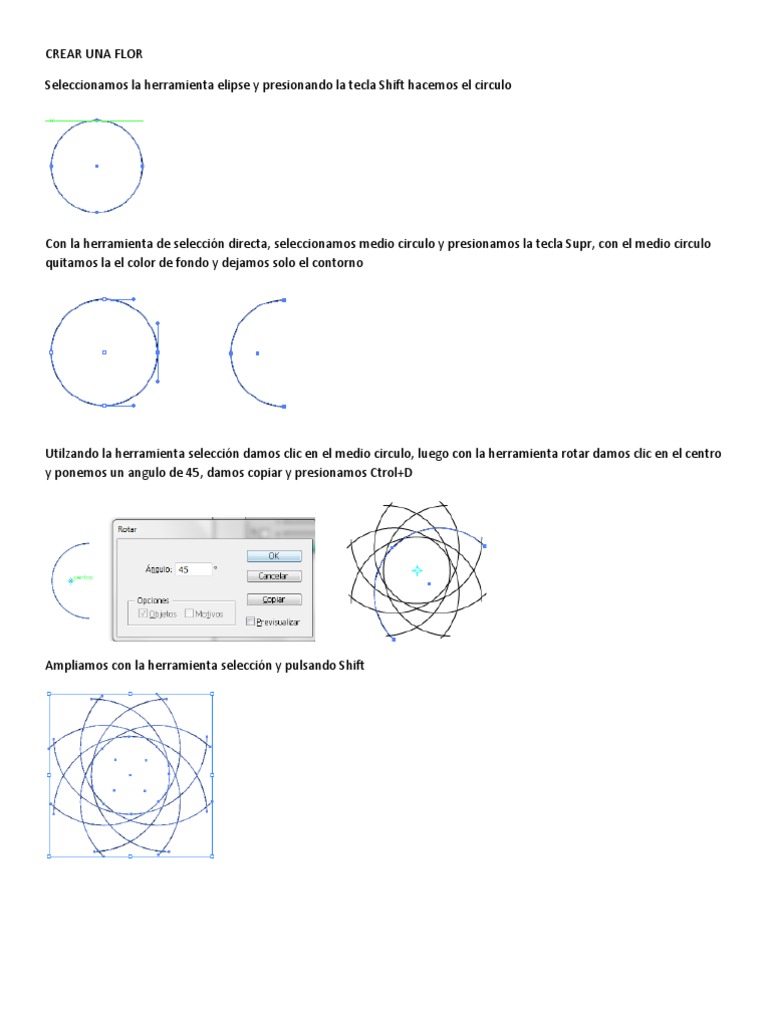 Con la herramienta de seleccin directa, seleccionamos medio circulo y presionamos la tecla Supr, con el medio circulo quitamos la el color de fondo y dejamos solo el contorno