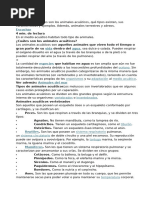 Se deben distinguir entre los animales que pueden aprovechar para la respiracin el oxgeno disuelto en el agua y los que necesitan respirar el oxgeno del aire. Los animales acuticos estn distribuidos por toda la escala zoolgica siendo casi exclusivamente acuticos los de grupos inferiores (protozoos), as como los espongiarios, los plipos y los equinodermos, gran nmero de gusanos, la mayor parte de los moluscos y todos losbraquipodos y tunicados. De los artrpodos que viven en el agua, casi todos los crustceos, raramente los arcnidos y los insectos que moran en ella estan los zancudos. Abundan tambin entre los vertebrados los animales acuticos distinguindose entre los que viven completamente en el agua respirando mediantebranquias como los peces y todas las formas larvarias de los anfibios aunque estos ltimos, en sus formas adultas (con respiracin pulmonar) son unas veces acuticos como la rana y la salamandra y otras, terrestres como el sapo. Los dems vertebrados respiran por medio de pulmones pero esto no es obstculo a que haya entre ellos muchas especies acuticas como: Entre los reptiles: numerosas tortugas, algunas serpientes y los cocodrilos y caimanes. Entre las aves: las palmpedas. Entre los mamferos: los cetceos y pinnpedos, varios roedores como el castor, ciertos carnvoros como la nutria y algunos paquidermos como el hipoptamo entre otros como los carnivoros y los que comen plantas.