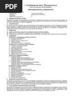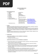 METODOLOGA Se propone como esquema metodolgico descripcin de la teora de manera rigurosa (desarrollo de pensamiento lgico formal) dentro de las posibilidades de construccin y participacin de los estudiantes, donde ellos deben hacer un acercamiento previo de las lecturas a los temas. En esta primera etapa surgen dudas y expectativas que enriquecen el aporte magistral del docente, presentando los tpicos bsicos necesarios y suficientes para generar nuevos esquemas de representacin. En general se propone como esquema metodolgico la lectura previa de los temas y el trabajo distribuido de la siguiente manera: TRABAJO DIRECTO Se propone realizar clases magistrales desarrolladas en torno a las preguntas de los estudiantes o a la presentacin de los tpicos correspondientes al curso. En este tipo de trabajo, el docente en cada tema, har una breve introduccin que permita al estudiante orientar su trabajo en la bsqueda y construccin del conocimiento y avanzar en su proceso de formacin integral. Los temas que el estudiante no recuerde o en los que presente dificultades para el aprendizaje, y que no sean contemplados en esta propuesta son responsabilidad del estudiante bajo el trabajo cooperativo; debido a las falencias de la educacin media, el grupo de ciencias bsicas propone cursos de extensin, electivos o de nivelacin para subsanar estas dificultades. TRABAJO COOPERATIVO Con ste se pretende estimular al estudiante en el trabajo en equipo por medio de actividades realizadas en grupos de mximo 5 estudiantes, con la asesora y la retroalimentacin del profesor.
