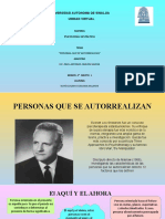 Las personas realizadas aceptan la esencia de las cosas y de la gente, incluidas ellas mismas. Por ejemplo, el nio es tomado como un ser por derecho propio y no como un adulto inferior. Algunas personas no saben comprender o tolerar a los nios, ni relacionarse con ellos, ni con alguien que sea totalmente distinto de ellas. La gente sana, en cambio, puede tomar las cosas y la gente tales como son. La forma ms bsica de aceptacin es la satisfaccin consigo mismo. Las personas autorrealizadas carecen de timidez, sentimiento de culpabilidad y duda, tan dominantes en la gente en general. Pueden no conseguir susideales pero perciben sus ideas e inclusive sus inferioridades con respecto a otros como tales, y no por esto se aceptan menos a s mismas. La persona realizada no quiere ser otra persona, aunque perciba de modo muy claro la realidad de sus propios defectos y se esfuerce por mejorarlos. 3. Espontaneidad, simplicidad, naturalidad