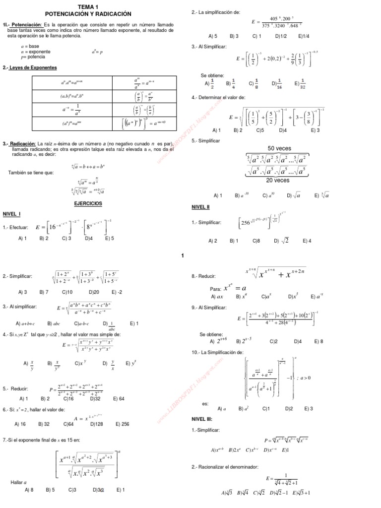 1I.- Potenciacin: Es la operacin que consiste en repetir un nmero llamado