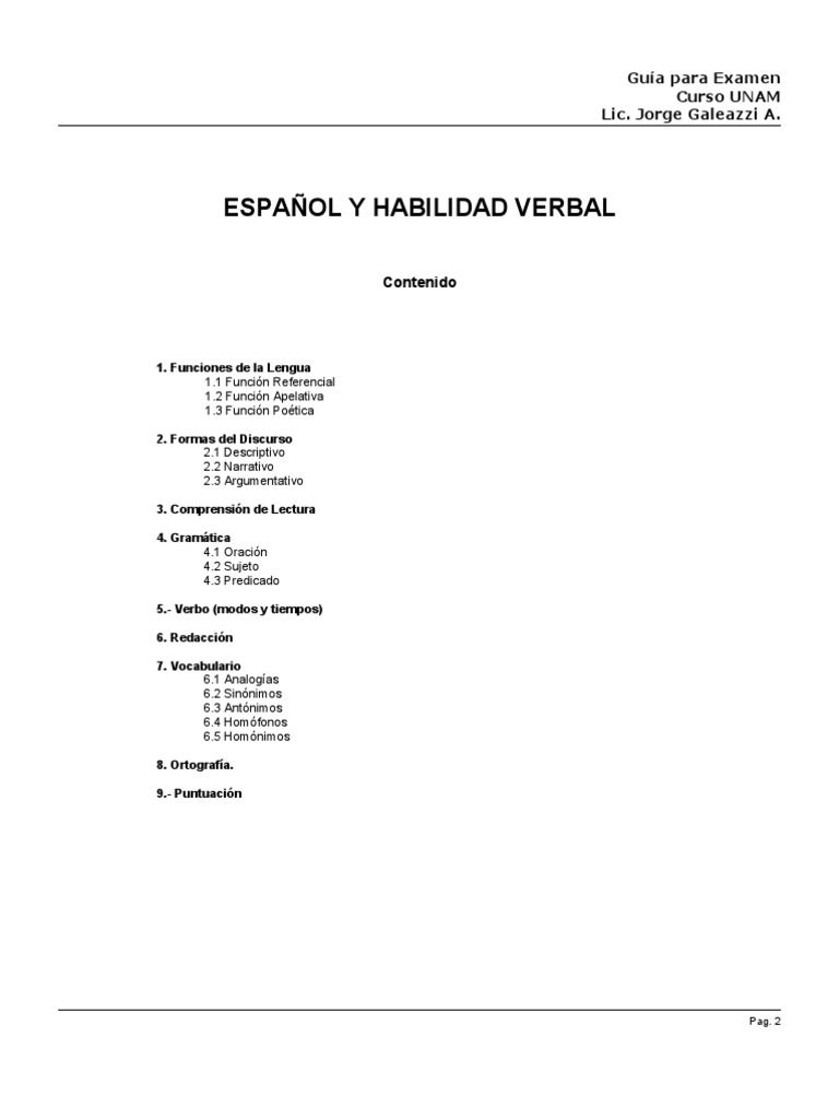Guía de Español y Habilidad Verbal UNAM