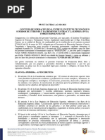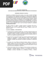 con treinta das de anticipacin. La terminacin de este convenio por cualquiera de las causales anteriormente sealadas, no afectar los estudios ni la titulacin de los estudiantes sujetos a este convenio ni tampoco afectar el desarrollo de los proyectos y actividades especficas que se encuentren en ejecucin salvo que las partes, expresamente y de comn acuerdo decidieren lo contrario. CLUSULA NOVENA: CONTROVERSIAS.Cualquier controversia, diferencia o reclamacin que se derive o est relacionada con la interpretacin o ejecucin del presente convenio, las partes tratarn de solucionarlas de mutuo acuerdo dentro de un plazo no mayor a treinta das calendario de haberse suscitado las mismas; de persistir las diferencias podrn someterse al procedimiento de Mediacin en el Centro de Mediacin de la Procuradura General del Estado con sede en Quito, de conformidad al procedimiento establecido en la Ley de Arbitraje y Mediacin, as como a la normativa que rige dicho Centro. De persistir el conflicto, deber suscribirse la respectiva Acta de Imposibilidad de Mediacin, y la controversia se ventilar ante la Corte Provincial de Justicia de Pichincha a travs de la Sala Especializada de lo Contencioso Administrativo (Tribunal Distrital de lo Contencioso Administrativo) con sede en la ciudad de Quito. CLUSULA DCIMA: DOCUMENTOS HABILITANTES: Forman parte integrante del presente convenio, los siguientes documentos habilitantes, que son conocidos por las partes: a) Las que acreditan la calidad de los comparecientes; y, b) Los sealados en la clusula primera de antecedentes. DOMICILIO Y NOTIFICACIONES: Para efectos de comunicaciones, las partes fijan como domicilios los siguientes: LA SENESCYT: Direccin: Calle Whymper E7-37 y Alpallana, Edificio Delfos, Telfono: 22505660- 22505656 LA ESCUELA SUPERIOR POLITCNICA DEL LITORAL: Direccin: Campus Gustavo Galindo Kilmetro 30.5 va Perimetral