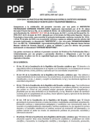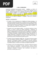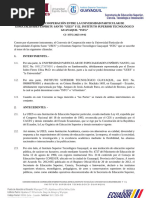 informe escrito peridicamente sobre el avance de las actividades realizadas a las mximas autoridades de la SENESCYT, la ESPOL y el INSTITUTO. f) Sujetarse a las normas legales vigentes en todo lo relacionado con la ejecucin del presente convenio. COMPROMISOS Y OBLIGACIONES DE LA ESPOL: a) Entregar la propuesta detallada del equipamiento que se requiere para el fortalecimiento e implementacin de las carreras de nivel tecnolgico superior en el Instituto Tecnolgico Superior Simn Bolvar a partir del Proceso de reconversin, una vez suscrito el presente convenio. b) Proporcionar las facilidades existentes necesarias para la implementacin de lo equipos mecnicos a ser instalados en los talleres del Instituto Tecnolgico Superior Simn Bolvar en el marco del proyecto de reconversin de la formacin tcnica y tecnolgica superior para el cumplimiento del objeto del presente convenio. c) Permitir la vinculacin de docentes de la ESPOL bajo la figura de comisin de servicios con remuneracin en labores acadmicas en el Instituto Tecnolgico Superior Simn Bolvar. d) Dar seguimiento y supervisar en forma coordinada con el INSTITUTO, la implementacin integral de la metodologa dual en las carreras a impartirse en el nivel tecnolgico superior del Instituto Tecnolgico Superior Simn Bolvar una vez que se hallan aprobado las respectivas mallas curriculares. e) Acompaar los procesos acadmicos necesarios para el fortalecimiento e implementacin de las carreras tecnolgicas del Instituto Tecnolgico Superior Simn Bolvar, as como el asesoramiento para la contratacin de personal docente necesario para la implementacin de las mencionadas carreras. f) Brindar todas las facilidades para el uso de instalaciones (oficina, aulas y talleres) y servicios (transporte, biblioteca) que la ESPOL ofrece a sus estudiantes, para que puedan ser usadas por los estudiantes de las carreras de tecnologa cuando estos lo requieran. g) Asesorar al Instituto Tecnolgico Superior Simn Bolvar en la elaboracin y desarrollo del pensum acadmico y planificacin