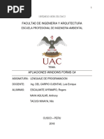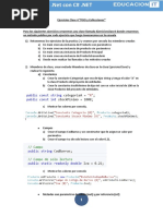 Agregar un botn mas a la forma para Limpiar el contenido de los cuadros de texto. Con el siguiente cdigo: txtNumero1.Text = ; txtNumero2.Text = ; txtResultado.Text = ; Ejecutar el programa; posteriormente cambiar el cdigo anterior por el siguiente y comprobar que hacen lo mismo: txtNumero1.Clear( ); txtNumero2.Clear( ); txtResultado.Clear( );