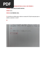 10.- Supongamos que las masas m1= 2 kg y m2=8 kg estn unidas por una cuerda que pasa por una polea ligera sin friccin como se indica en la figura. Cul es la aceleracin del sistema y la tensin en la cuerda? A = M1 T W = m*a T (m*g) = m*a T (2 kg*9.8 m/s2) = 2 kg*a T19.6 N = 2 kg*a B = M2 T+ W=m*a T+ (m*g) = m*a T + (8 kg*9.8 m/s2) = 8 kg*a T + 78.4 N = 8 kg*a