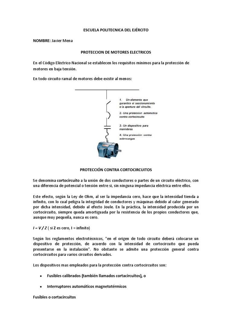 requisitos mnimos para la proteccin de motores en baja tensin. En todo circuito ramal de motores debe existir al menos: