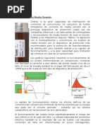 Otra caracterstica a tener en cuenta, cuando hemos de seleccionar un interruptor magnetotrmico, es su poder de corte en carga, que puede ser distinto dentro de un mismo tipo de curva de desconexin. Los valores de fabricacin ms normales de la intensidad mxima que pueden cortar, ante un cortocircuito, son: 1,5; 3; 4,5; 6; 10; 15; 20; y 25 KA. PROTECCIN CONTRA SOBRECARGAS Entendemos por sobrecarga al exceso de intensidad en un circuito, debido a un defecto de aislamiento o bien, a una avera o demanda excesiva de carga de la mquina conectada a un motor [Link] sobrecargas deben de protegerse, ya que pueden dar lugar a la destruccin total de los aislamientos, de una red o de un motor conectado a ella. Una sobrecarga no protegida degenera siempre en un cortocircuito. La proteccin contra sobrecargas en un motor elctrico, es necesaria para evitar que se queme y para asegurar una duracin mxima de operacin. Los motores elctricos, si se les pern-te, funcionarn con una salida mayor de su capacidad nominal. Se puede originar una sobrecarga