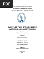 El propsito de este trabajo, es realizar un anlisis sobre los Regmenes de Excepcin que hemos tenido en nuestro pas; hemos querido hacer un breve recuento de cmo, la idea o nocin de Regmenes de Excepcin, lo encontramos a lo largo de la historia de la humanidad, habiendo evolucionado a lo largo de esta historia, hecho que el Per no ha sido ni es ajeno. Se han tomado determinados criterios para el desarrollo de este trabajo; analizando brevemente, la historia de nuestro Per, a partir del inicio de la poca Republicana, la presencia de los perodos del Militarismo, en donde empezamos, a tener las primeras nociones de Regmenes de Excepcin; luego en un marco de evolucin histrica, vemos que surgen normas de carcter nacional e internacional, que tratan de regular los mecanismos de proteccin de los individuos en situaciones de instauracin de estos regmenes de excepcin. Desarrollamos los conceptos de regmenes de excepcin, clases de rgimen excepcin, estado de emergencia, situaciones de excepcin en el estado emergencia,medidas de excepcin en el estado de emergencia, formalidad excepcin en los estados de emergencia,principios que regulan las medidas excepcin, atribuciones de las fuerzas armadas, estado de sitio. de de de de