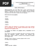 El texto puede tener unas cabeceras, comprendidas entre las etiquetas <H1> y </H1>, <H2> y </H2>, etc. (hasta el nmero 6), siendo el nmero indicativo del tamao. El tamao mayor es el correspondiente al nmero 1. Una etiqueta muy interesante es la de centrado <CENTER> y </CENTER> (no la soportan todos los navegadores, aunque s la mayora de ellos). Nos centra todo lo que est dentro de ella, ya sea texto, imgenes, etc. Tambin tenemos los separadores (horizontal rules), que se consiguen con la etiqueta <HR> (no existe la correspondiente de cierre). Con ella se obtiene una raya horizontal tan ancha como la pantalla 2ejemplo.html <HTML> <HEAD> <TITLE> Pagina dos </TITLE> </HEAD> <BODY> <CENTER><H1> La informatica </H1></CENTER> <H2>El computador </H2> <p> El computador es una maquina que se utiliza para el manejo de la informacion</p> <H2>Los programas </H2> <p>Los programas se desarrollan con las computadoras y resuelven cualquiera actividad</p> <HR> </BODY> </HTML> Cada documento Html contendr principalmente texto. Veamos como hacerlo ms agradable con algunas etiquetas elementales. Negrilla [Bold] <B>...</B> <STRONG>...</STRONG> Principio y final de zona en grueso Itlico [Italic] <I>...</I> <EM>...</EM> Principio y final de zona en itlico (cursiva) Tamao del carcter [Font size] <FONT SIZE=?>... </FONT> Principio y final de zona con este tamao Color del carcter [Font color] <FONT COLOR="#$$$$$$"> </FONT> Principio y final de zona en color Salto de lnea [Line break] <BR> Introducir un salto de lnea Comentarios [Comments] <!-- *** -->