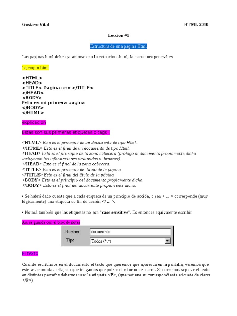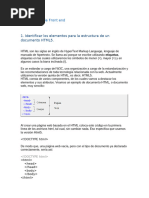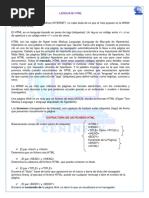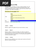 <HTML> Esto es el principio de un documento de tipo Html. </HTML> Esto es el final de un documento de tipo Html. <HEAD> Esto es el principio de la zona cabecera.(prlogo al documento propiamente dicho incluyendo las informaciones destinadas al browser). </HEAD> Esto es el final de la zona cabecera. <TITLE> Esto es el principio del ttulo de la pgina. </TITLE> Esto es el final del ttulo de la pgina. <BODY> Esto es el principio del documento propiamente dicho. </BODY> Esto es el final del documento propiamente dicho. Se habr dado cuenta que a cada etiqueta de un principio de accin, o sea < ... > corresponde (muy lgicamente) una etiqueta de fin de accin </ ... >. Notar tambin que las etiquetas no son "case sensitive". Es entonces equivalente escribir