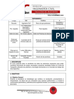 7. PLANTILLAS DE CLCULOS PARA POLGONOS DE APOYO Y / O REALES Objetivo del Tema: Presentar la metodologa para el trazo, clculo y levantamiento de Poligonales 9 Horas. 7.1 Poligonales de apoyo y Poligonales Reales 7.2 Condicin de cierre angular y compensacin. Verificacin del Cierre con Tolerancia. Mtodos de Compensacin 7.3 Clculo de direcciones con los ngulos compensados. Condicin de cierre Lineal y compensacin. 7.4 Verificacin del cierre Lineal con tolerancia. Regla del trnsito y regla de la Brjula. 7.5 Obtencin de las Coordenadas de los vrtices de la Poligonal. 7.6 Clculo de Distancias y Rumbos en Base a Coordenadas. 7.8 Dibujo de un Plano utilizando Coordenadas. 8. TPICOS DE AGRIMENSURA Objetivo del Tema: Expresar en trminos generales Problemas topogrficos relacionados con el clculo de superficie por medio de poligonales. 9 horas. 8.1 Problema de clculo de superficie por mtodo de las coordenadas. 8.2 Problemas de clculo de superficie conociendo los extremos de la lnea divisoria o conociendo el punto de partida y la direccin de la lnea. Determinacin de los datos de la lnea divisoria que secciona al polgono en dos partes iguales o dadas conociendo el punto de partida y la direccin dada. 8.3 Replanteo de linderos. PRACTICAS DE TOPOGRAFA I Objetivo General: Aplicar los conocimientos obtenidos en la teora. 22 horas PRCTICA1.- MEDICION DE UNA LINEA Y CONOCIMIENTO DE MEDIDAS PERSONALES USO DE LOS UTENCILIOS DE LA TOPOGRAFA. Objetivo: que el alumno se familiarice con los utensilios necesarios para la medicin de distancias. 2 Horas PRCTICA 2. - PROBLEMAS QUE SE RESUELVEN CON EL USO DE LA CINTA Que aplique los conocimientos tericos para resolver problemas con el uso de longimetros exclusivamente. 2 Horas PRCTICA 3. - MEDICION DE UNA POLIGONAL CON CINTA POR LADOS DE LIGA Mediante la aplicacin de los conocimientos adquiridos en clase se pueda resolver un problema especifico con la cinta. 2 Horas