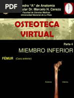 Cndilos femorales medial y lateral, fosa intercodlea (posterior), carilla rotuliana (anterior), epicndilos medial y lateral.