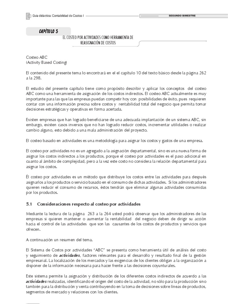 5.1 Consideraciones respecto al costeo por actividades