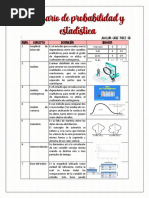 SERIES TEMPORALES.- Conocida tambin como serie cronolgica. Es la sucesin de observaciones cuantitativas ordenadas en el tiempo de un fenmeno. Los datos tienen un orden que no es posible variar. La informacin puede ser mensual, trimestral, anual o de cualquier otro intervalo temporal. SESGO.- Se denomina as a la asimetra que presenta una distribucin de frecuencias. Puede ser sesgo negativo o a la izquierda y sesgo positivo o a la derecha. SUCESO CIERTO.- Se conoce tambin como suceso seguro. Es aquel suceso que siempre se realiza. Estar formado por todos los resultados posibles del experimento; es decir, coincide con el espacio muestral. SUCESO IMPOSIBLE.- Es aquel suceso que no se realiza nunca. Se designa por un . SUCESOS COMPUESTOS.- Se llama sucesos compuestos, a los sucesos formados por dos o ms puntos muestrales; es decir, por ms de un resultado del experimento. SUCESOS CONTRARIOS.- Dado un suceso cualquiera A del espacio de sucesos S, se llama suceso contrario del suceso A a un suceso que se realiza cuando no se realiza A, y recprocamente.