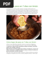 ms. Das 19-21: Come solo papayas. Das 22-24: Come solo sanda. Das 25-27: Come solo melones cantalupes. Cuando termines la dieta desintoxicante de frutas, debes empezar a comer solo fruta al principio e ir aadiendo yogurt si lo deseas y luego vegetales. Empieza comiendo muy despacio y con cautela. No comas frutos secos y granos ahora, pues sera contraproducente. Se recomienda masajear el cuerpo frecuentemente con aceite de almendras durante la dieta. La dieta desintoxicante de frutas puede ser bastante extenuante, por esa razn puede modificarse o reducirse a un plan de 21 das que ser ms sencillo. En este caso debes hacer slo un da de cada una de las tres etapas centrales (los das 10-12, 13-15 y 16-18), en lugar de tres das. Leer mas: Dieta desintoxicante de frutas http://www.dietas.com/articulos/dieta-desintoxicante-defrutas.asp#ixzz1iWIniqss