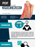 Resumen La preservacin plena de la papila interdental es uno de los elementos anatmicos gingivales que distingue entre un trabajo implantolgico estticamente realizado, del que puramente cumple con una sustitucin dental. Apoyadas en diversos elementos anatmicos, histolgicos y funcionales las adecuadas decisiones pre y post operatorias pueden lograr estos objetivos que impactan en la apariencia y en el bienestar de las personas. En esta presentacin se ponderar la influencia de diversos componentes dentogingivales y seos para mejor control de los resultados estticos enfatizando en la regin anterior superior cuando se maneja la terapia implantolgica en la rehabilitacin protsica. Palabras clave: Papila dental, papila interdental, grosor biolgico, distancia interradicular, punto de contacto.