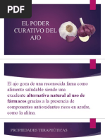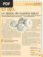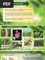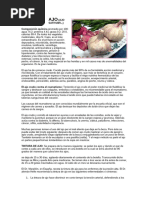 Nombre vulgar: Ajo Nombre cientfico: Allium sativum L. Familia. Liliceas Hbitat: Se conoce desde tiempos remotos, habindose utilizado por la mayora de las culturas, desde los antiguos egipcios, romanos, griegos hasta en la misma India u Oriente. Parece ser que su origen se ubica en Asia central, desde donde se entendi ampliamente y se encuentra naturalizado en muchas partes del mundo.