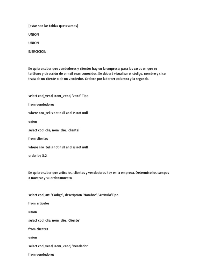 [estas son las tablas que usamos] UNION UNION EJERCICIOS: